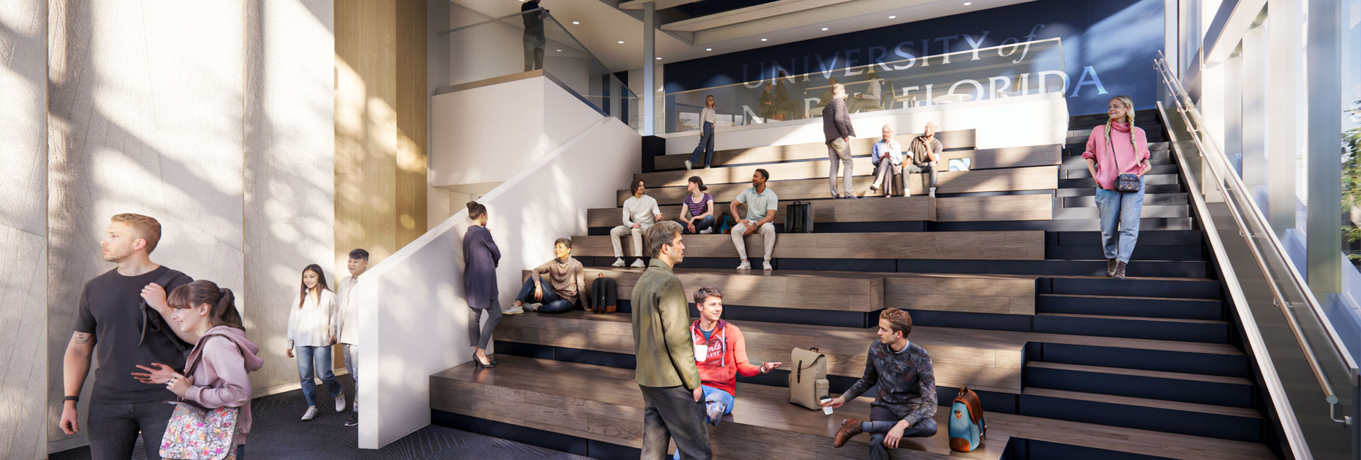 The Student Success Center will be positioned at the heart of UNF’s campus, between the Thomas G. Carpenter Library and Fine Arts Center. The three-story, 60,000-square-foot building will enhance student success by bringing essential academic services and vibrant study spaces together under one roof.